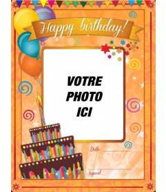 carte dquotanniversaire avec un fond orange et dessins droles personnaliser ligne