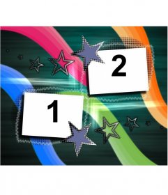 Cadre pour deux photos légèrement descuadrados avec fond vert foncé, les lignes colorées et les étoiles
